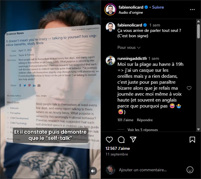 Le « self talk » ou se parler à soi même ... pour réfléchir ... ce serait plutôt sain.