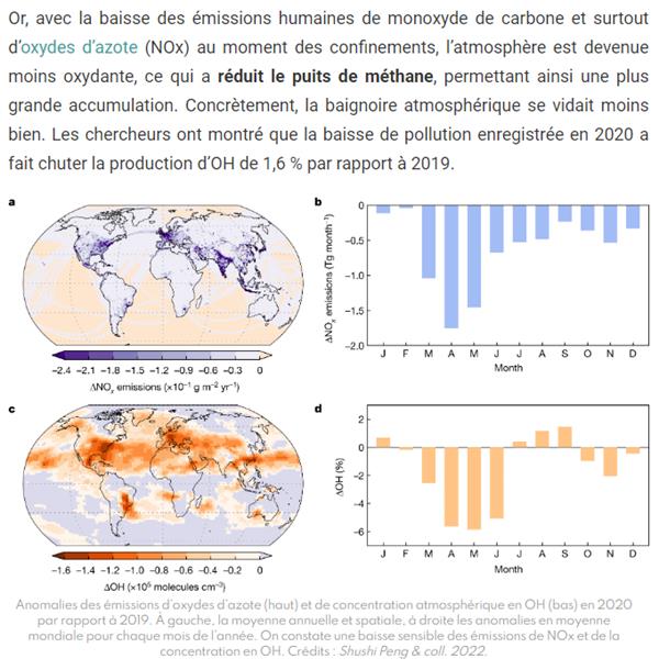 Contre intuitif: moins de pollution, donc ce "puis de méthane" étant moindre (la pollution semble participer à retirer du méthane de l'air), il y en a eu plus dans l'air pendant le confinement.